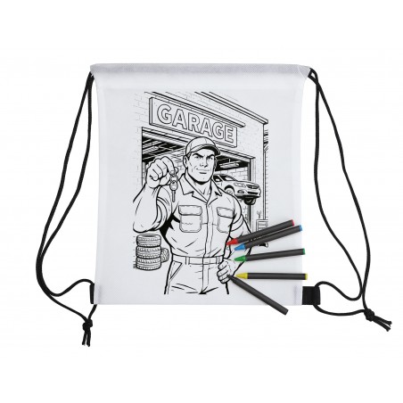 Con esta mochila de cordón de tela no tejida para colorear, cada niño se convierte en el artista de su marca. Elija su diseño y añada su logotipo en negro: ¿el resultado? ¡Una mochila única que los más pequeños harán suya en un abrir y cerrar de ojos! Se entrega con un juego de 5 lápices de colores y promete momentos divertidos de colorear en cualquier lugar: en la escuela, en una excursión, de viaje... ¡Un regalo promocional inteligente, divertido y muy visual para impulsar su comunicación y ofrecer al mismo tiempo un auténtico momento de placer creativo! Características: No tejido xx gr. Color de la mochila: blanco. Asas de nailon negro. Dimensiones: 30 x 25 cm. Impresión en color negro incluida